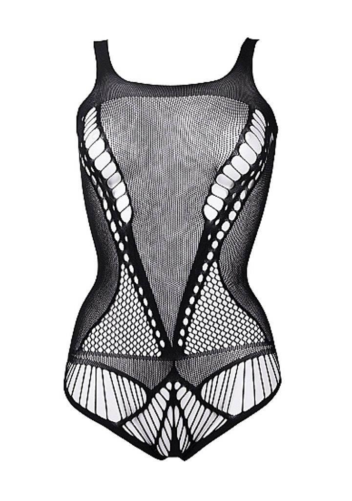 Popoln kontrastni teddy/body znamke Le Désir, ki bo podžgal vašo domišljijo! Sestavljajo ga perforirani deli ob straneh, ki poudarijo telo, ter mrežasti vzorci različnih oblik. Sešit je iz izjemno elastične in mehke tkanine (92% najlon, 8% spandeks).