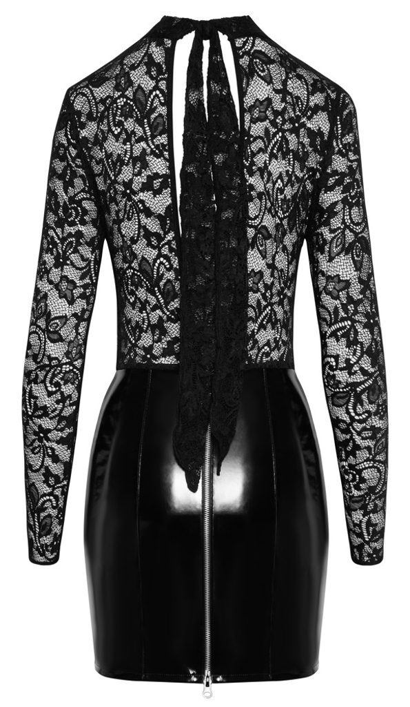 Poudarjajoča mini obleka z dolgimi rokavi – elegantna kombinacija čipke in vinila