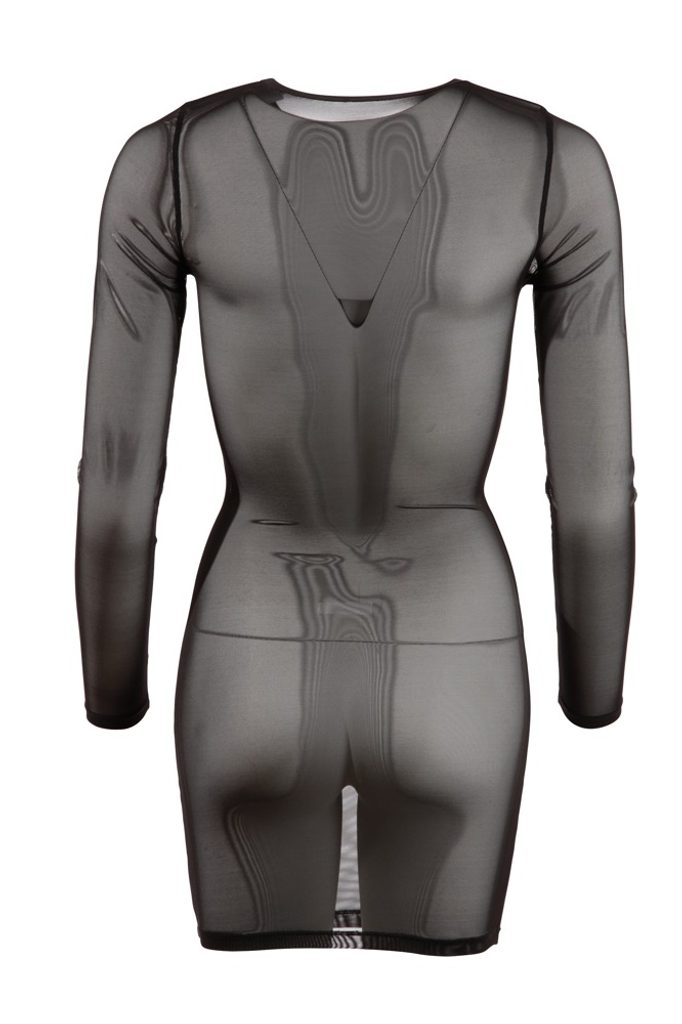 Razkrijte svojo čutnost v obleki, ki je bolj prefinjena kot sama golota. Oprijet kroj iz nežne prosojne mrežice postane vaša druga koža, popolnoma objame obline in poudari vašo naravno lepoto. Dolgi rokavi in okrogel izrez obleki dodajo pridih elegance, odsotnost spodnjega perila pa le še poudari njen dražljiv učinek.