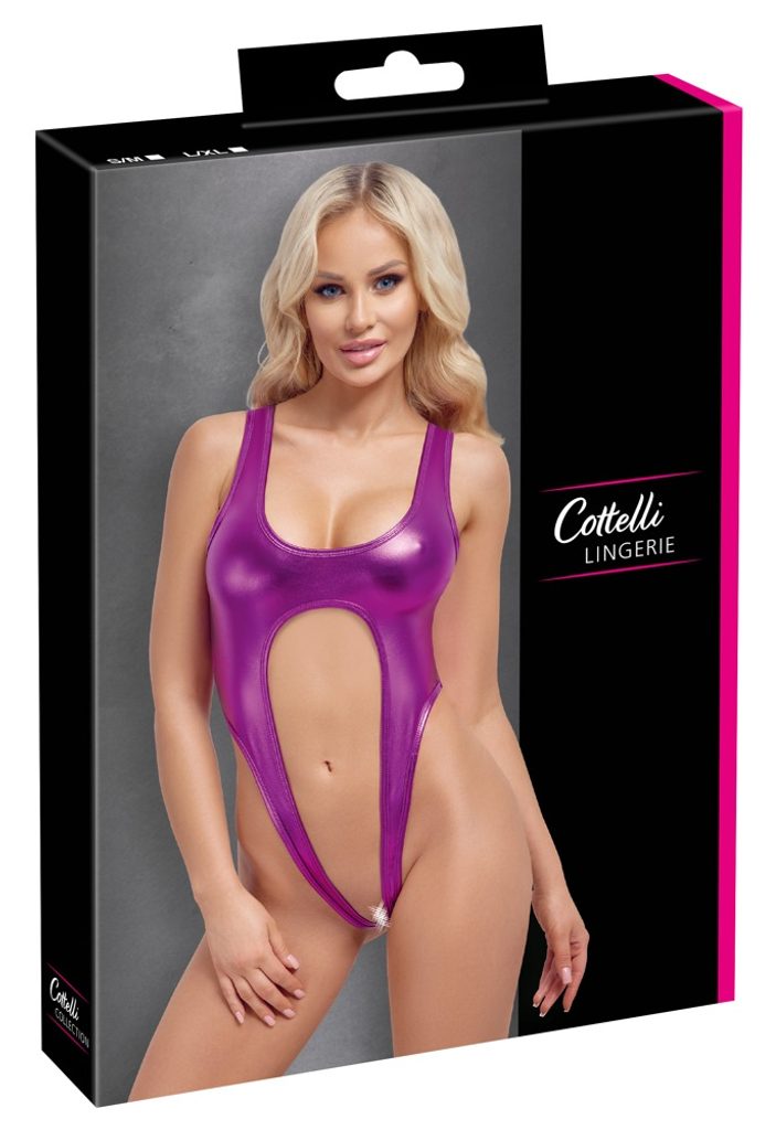Minimalistično body znamke Cottelli LINGERIE je izdelano iz prožnega in sijočega kovinsko rožnatega materiala. Je mehko in elastično, zato se popolnoma prilega telesu in nudi udoben občutek pri nošenju. Izjemno kratek in razkrivajoč kroj z osupljivo visokim izrezom zgoraj prekrije le minimum, spodaj pa skoraj nič.