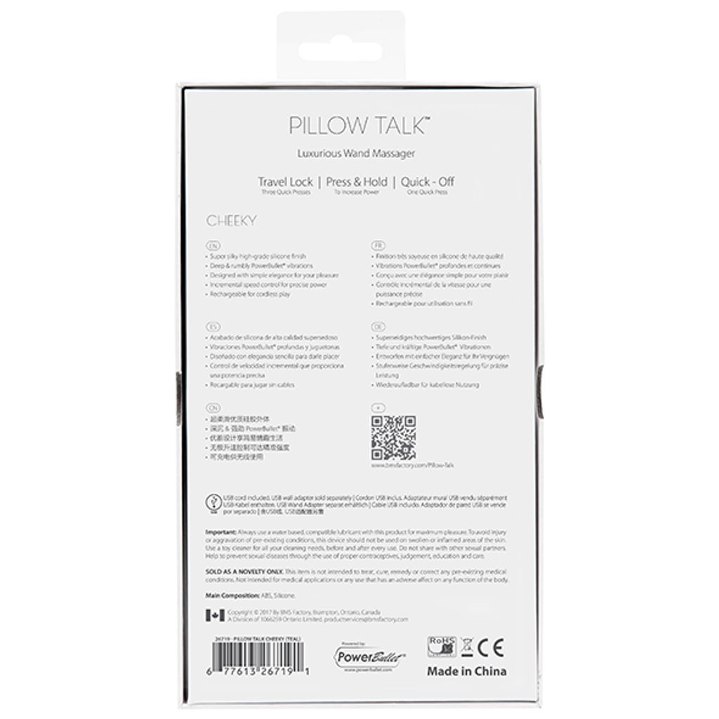 Pillow Talk Cheeky je vibracijska masažna naprava z glavo, ki jo poganja priljubljeni motor PowerBullet za globoke, močne vibracije. S svojim elegantnim dizajnom, oblazinjenim teksturiranim oprijemom in zabavnimi pastelnimi barvami ponuja uporabnikom lepoto in moč!