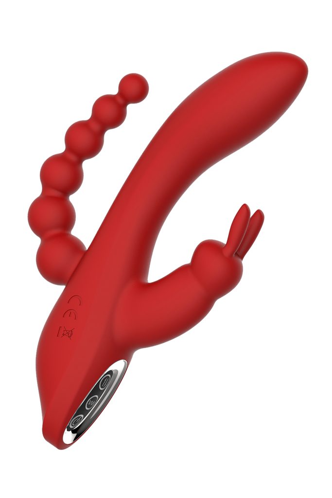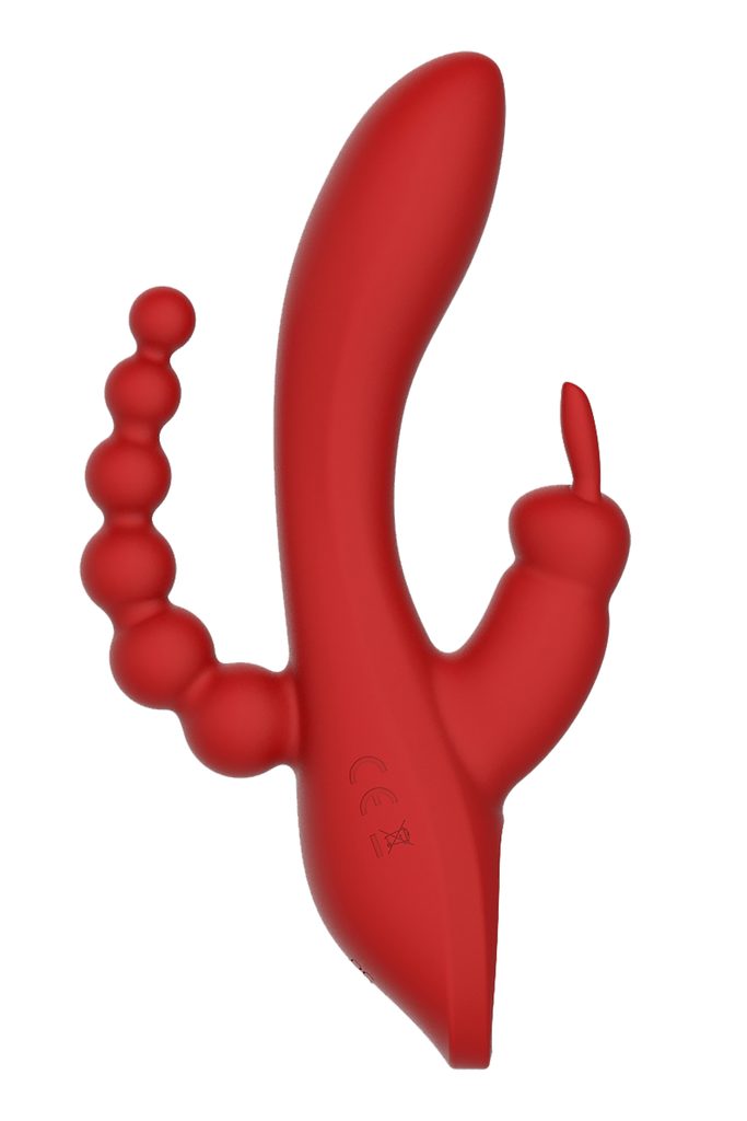 Vibrator Revolution Hera Dream Toys je pravi vsestranski vibrator za neskončno stimulacijo! Ima dva motorja, enega na vrhu in enega v stimulatorju klitorisa, zato so vibracije dobro porazdeljene. Prikupni zajček s svojimi ušeski draži vaš klitoris, medtem ko ukrivljena konica razvaja vašo točko G. Okrogle mehke analne kroglice poskrbijo za še večjo stimulacijo zadnjih vrat. Ima 3 stalne vibracije in 4 različne ritme. Silikonski material je čudovito mehak in gladek ter zagotavlja udobno uporabo. Po uporabi lahko vibrator enostavno in hitro napolnite s priloženim USB-kablom.